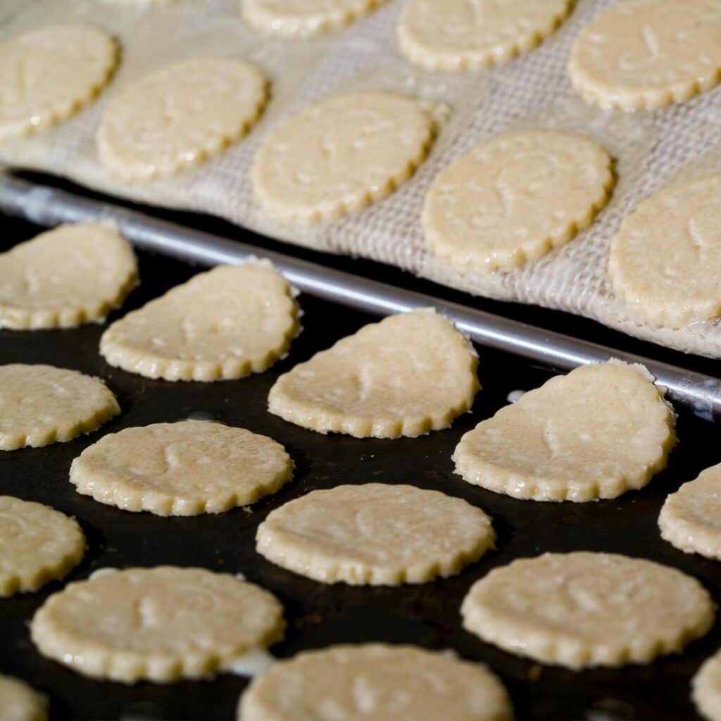 Amoureuse des bonnes et belles choses, Amélie recherche les recettes oubliées pour les mettre au goût du jour. Aujourd’hui, elle perpétue avec son équipe la tradition biscuitière française. Elle insuffle à La Sablésienne son caractère traditionnel avec des biscuits cuits sur plaques de métal et ramassés à la main.